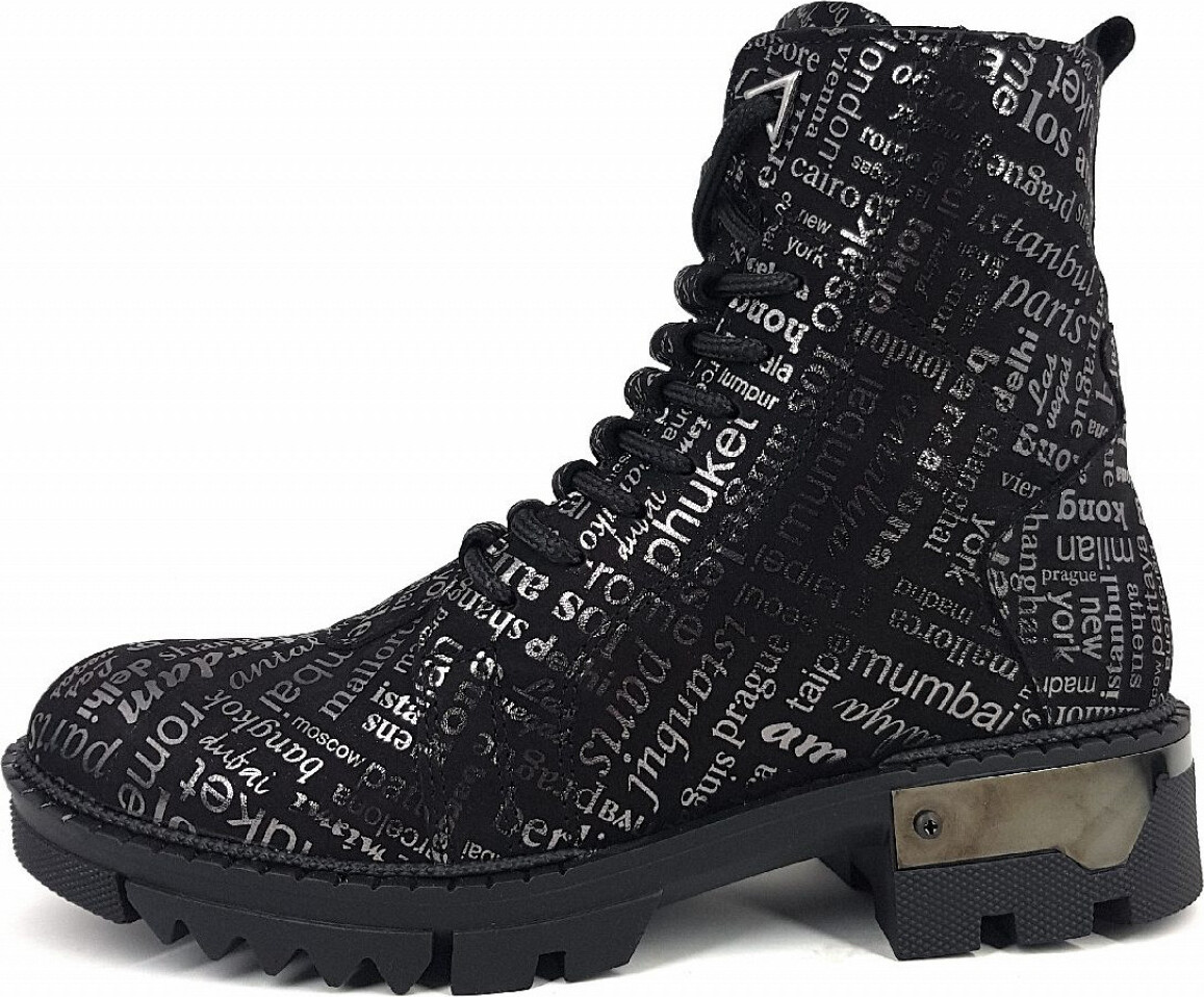 Diese trendigen Damen Schnürboots von 2 Go Fashion sind ein Must Have für die Herbst Winter Saison.Gefertigt aus Echtleder in Schwarz besticht der Boot optisch durch den auffälligen Allover-Print in Silber. +