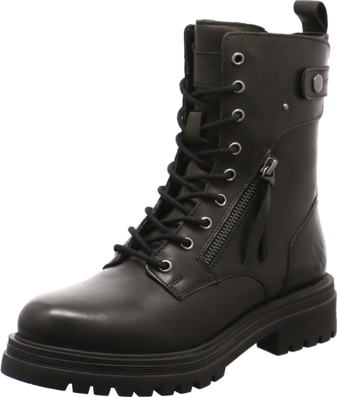 Der Zierzipper an der Außenseite in Kombination mit dem Zierknopf am Schaft runden den modernen Look gekonnt ab. Durch den seitlichen Reißverschluss ist ein leichter Einstieg möglich und mit der Schnürung kann der Schuh optimal an den Fuß angepasst werden.Das flauschige Innenfutter hält die Füße auch an kalten Tagen warm und mit dem Blockabsatz und der groben Laufsohle hast du einen sicheren Halt.Ein toller Boots für die neue Saison.