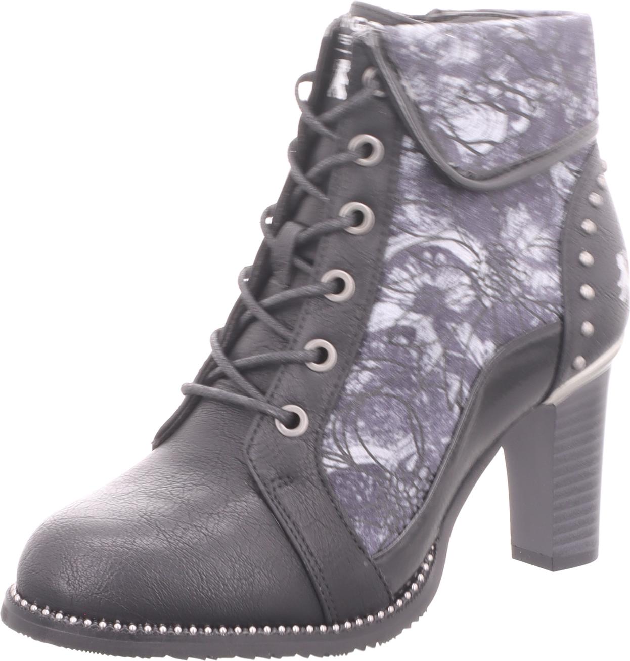 Für alle die das Besondere suchen ist diese ausgesprochen feminie Damen Schnürstiefelette von 2 Go Fashion genau das Richtige.Sie begeistert uns durch ihr ausgesuchtes Obermaterial aus Kunstleder in Schwarz und Textil Einsätzen am Schaft und den Seiten mit einem tollen Blumen Print. +