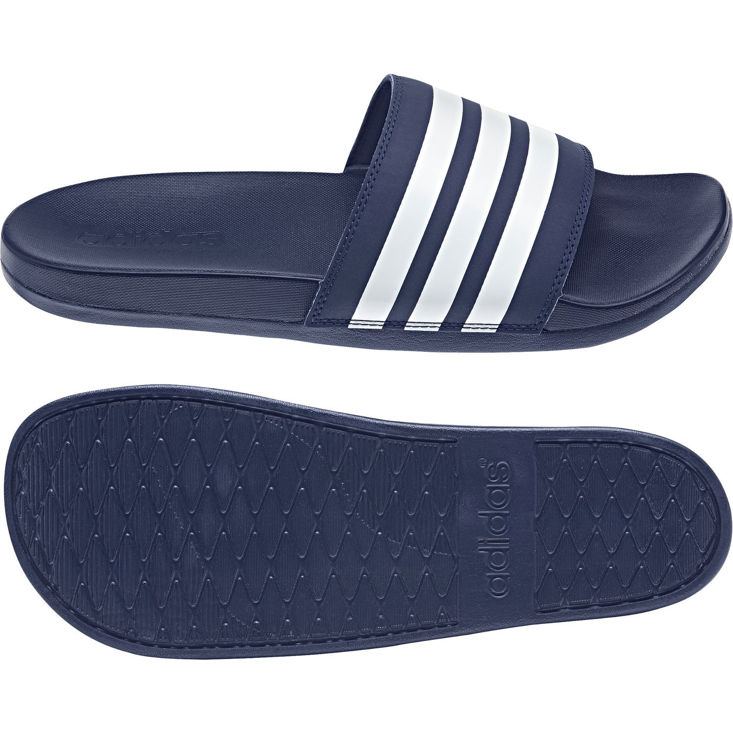 Die Adilette Comfort ist eine Pantolette für Herren von Adidas und ein vielseitiger Begleiter für warme Sommertage.Besonders weich und flexibel begeistert der Slide in vielseitigem Blau mit drei Streifen in Weiß und macht das Tragen ausgesprochen angenehm.Der Schuh trocknet schnell, ist besonders leicht und schnell angezogen und passt perfekt zu jedem sportlichen Sommer-Look.Hinweis des Herstellers: Der Schuh ist nicht zum Duschen geeignet.