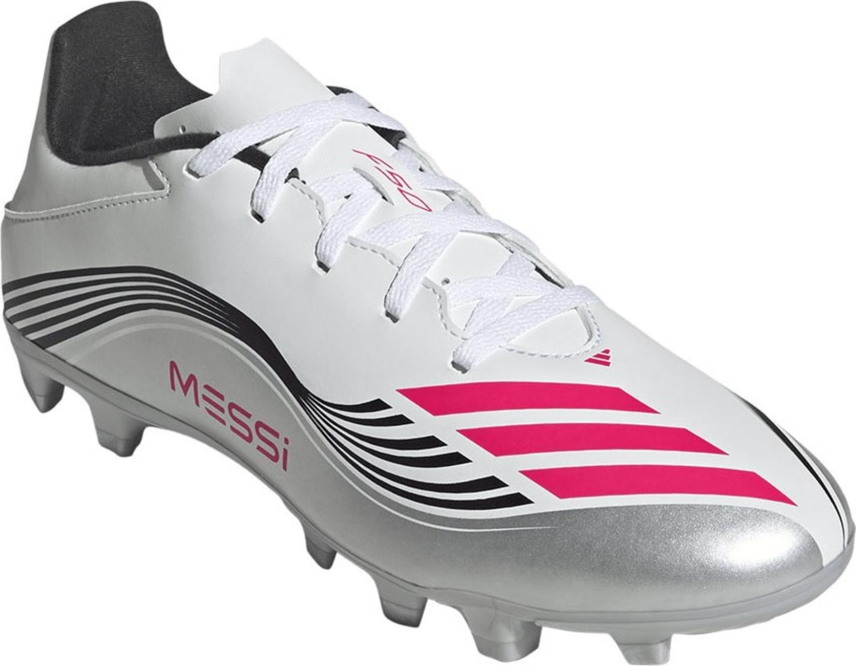 adidas performance F50 MESSI CLUB FÜR HART- UND ASCHENPLÄTZE Fußballschuh geeignet für Rasen- und Kunstrasenplätze (weiß/rot/silber)