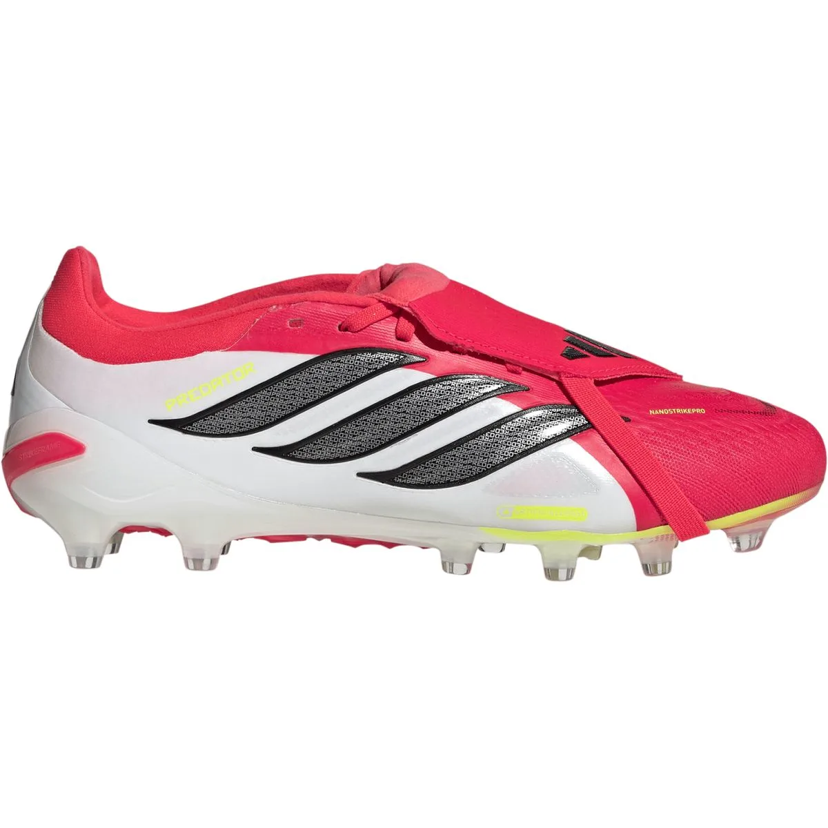 Damit kommen die adidas Power-Boots auch optisch besonders ernergisch ruuml,ber mit klarer Mission.Was bietet der adidas Predator Pro FT AG?NANOSTRIKEDas neue Performance-Upper fuuml,r alle Predators: Im Pro bekommst du die hochwertige Variante NANOSTRIKE PRO. Sehr weich, sehr leicht und besonders griffig durch texturierte Grafik-Elemente.FOLD OVER TONGUENicht neu, sondern legendauml,r: jetzt mit griffig texturiertem adidas Performance-Logo fuuml,r ein Plus an Ballkontrolle auf dem Spann.STRIKEFRAMEDie neue einteilige Sohle fuuml,r den Predator 2026: Hier im Pro aus leistungsfauml,higem Performance-Kunststoff.