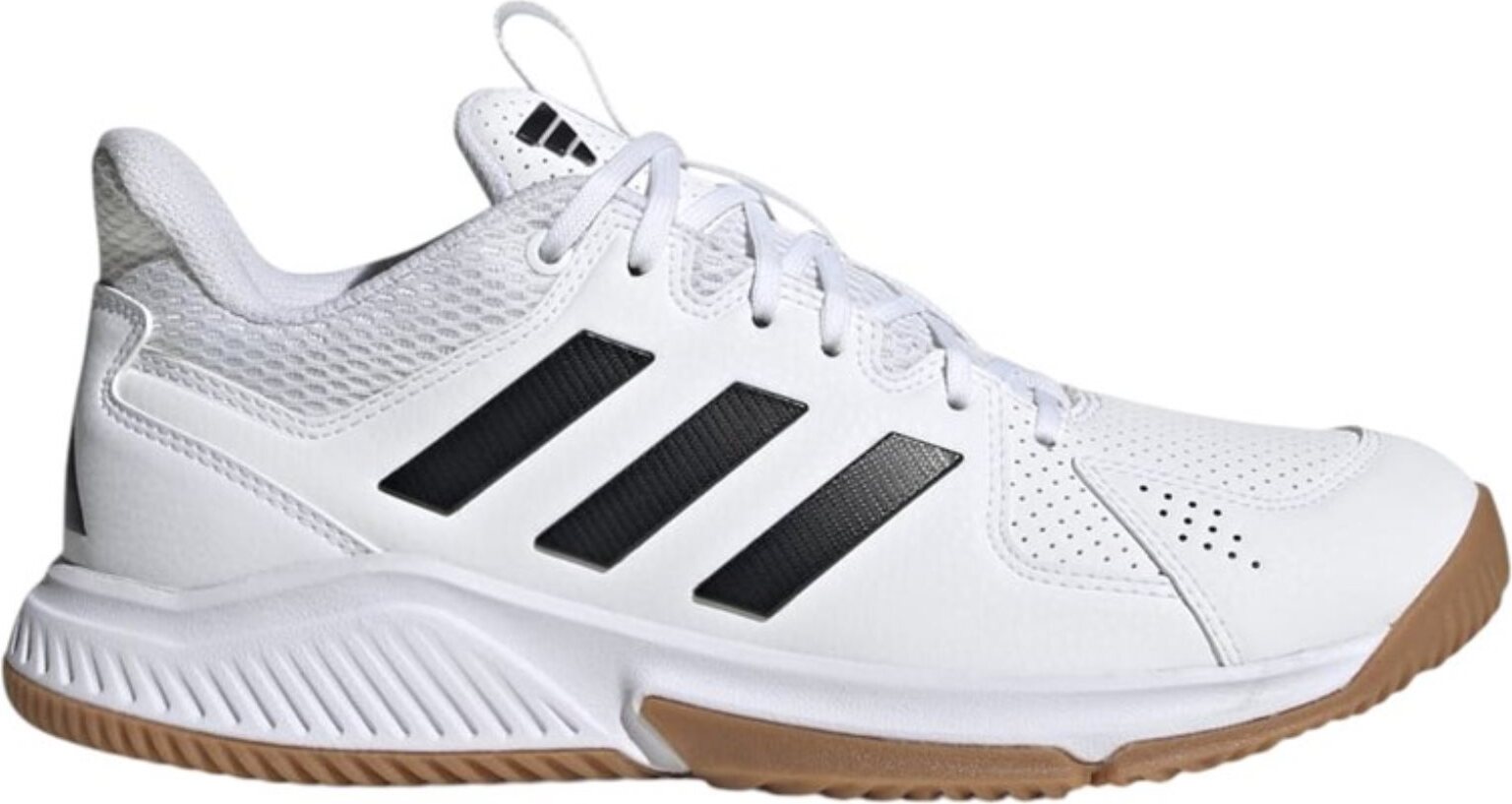 mit dem Court Flight Schuh von adidas kannst du bei jeder Hallensportart Vollgas gebendas zweilagige Obermaterial aus Mesh umschließt deinen Fuß passgenau für mehr Halt und einen sicheren Sitz bei schnellen Richtungswechseln, während die Verstärkungen für ein Plus an Stabilität sorgenaußerdem bietet dir die Gummiaußensohle hervorragenden Grip auf Hallenböden reguläre PassformSchnürsenkelzweilagiges Obermaterial aus Mesh Material: Obermaterial aus MeshFarbe: weiß