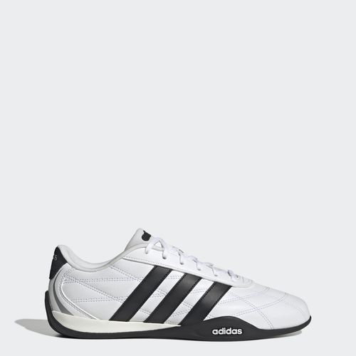 Die Gummiaußensohle mit umhüllter Ferse hat ein toughes, von Reifen inspiriertes Profil. Die kultigen 3-Streifen und das bekannte adidas Branding vervollständigen diesen Rennsport-Look und bringen einen frischen, sportlichen Vibe in deinen Streetstyle.