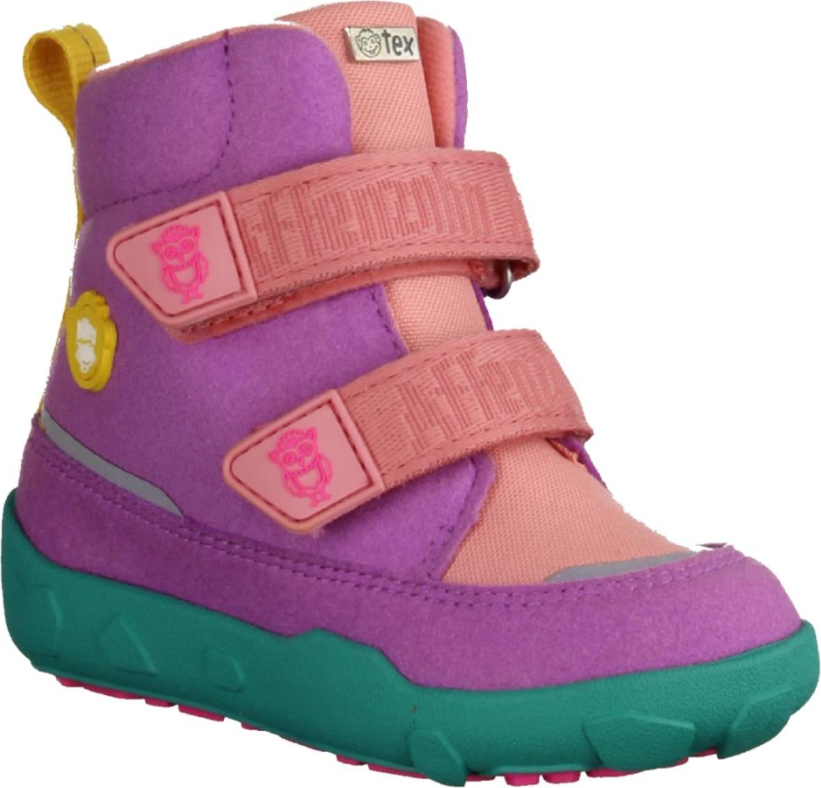 Der Owl Midboot ist ein veganer, gefütterter Winterschuh für Mädchen. Das Obermaterial aus Textil ist mit einer atmungsaktiven, wasserabweisenden Membran versehen, die vor Wind und Nässe schützt.
