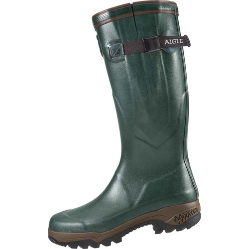Gefertigt aus Naturgummi Gomma Plus® bietet der Schuh zuverlässigen Wetterschutz, hohen Tragekomfort und Langlebigkeit. Die wasserdichte Balgfalte, die dämpfende Softex® Innensohle und die AIGLE tri-density Laufsohle sorgen für Stabilität, Komfort und sicheren Halt – ideal für anspruchsvolle Einsätze bei jedem Wetter.