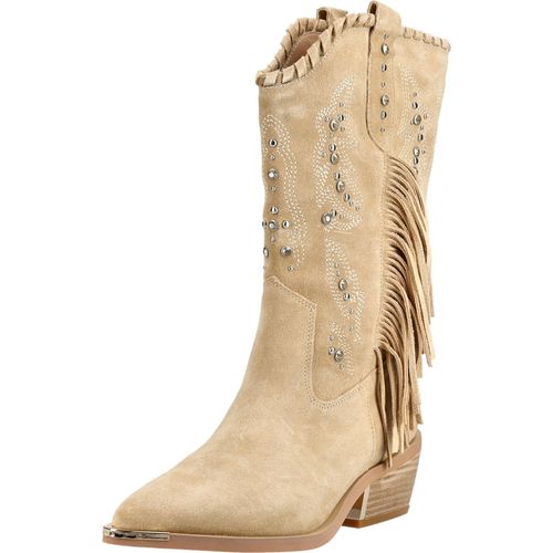 Dieser ausdrucksstarke Cowboy-Stiefel begeistert mit hochwertigem Veloursleder und liebevollen Details im angesagten Western-Look. +