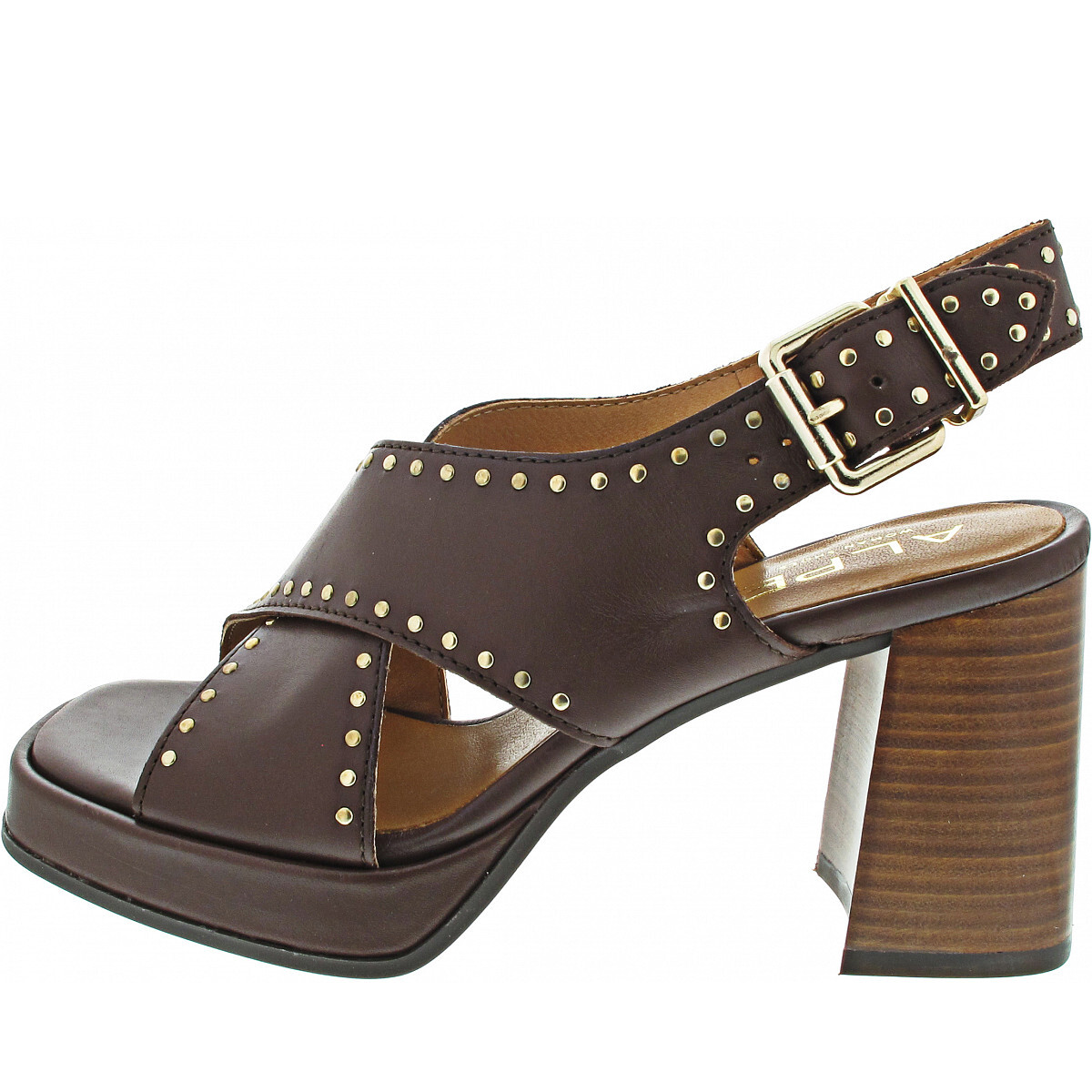 Alpe Sport - modische Sandalette - stabile Laufsohle - Fersenriemchen verstellbar - coole Plateausohle - hochwertige Verarbeitung - Blockabsatz in wunderschöner Holzoptik - total trendige Sandalette mit Nietenapplikation - Sommertrend - Must Have