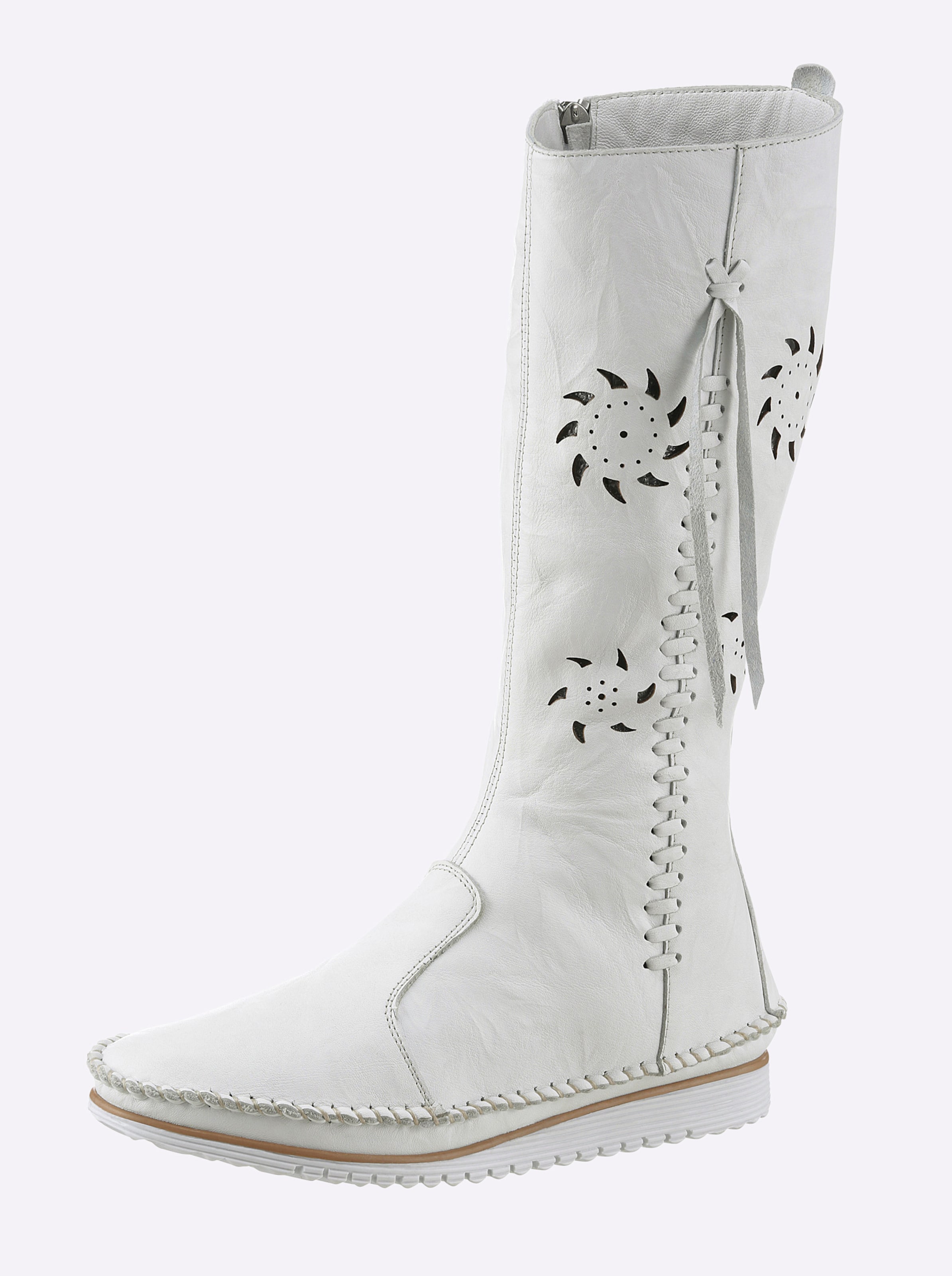 Stiefel Aus weichem Rind-Nappaleder, in Mokassin-Optik mit hübschen Cut-outs und dekorativer Handnaht. +