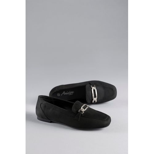 Aniston SHOES Loafer, Slipper, Schlupfschuh, Flat, Schmuckspange - NEUE KOLLEKTION (schwarz)