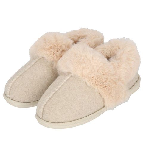 Wunderbar warme und komfortable Damen-Schlupfpantoffeln mit einer Innen- und Außenseite aus weichem Teddymaterial. +