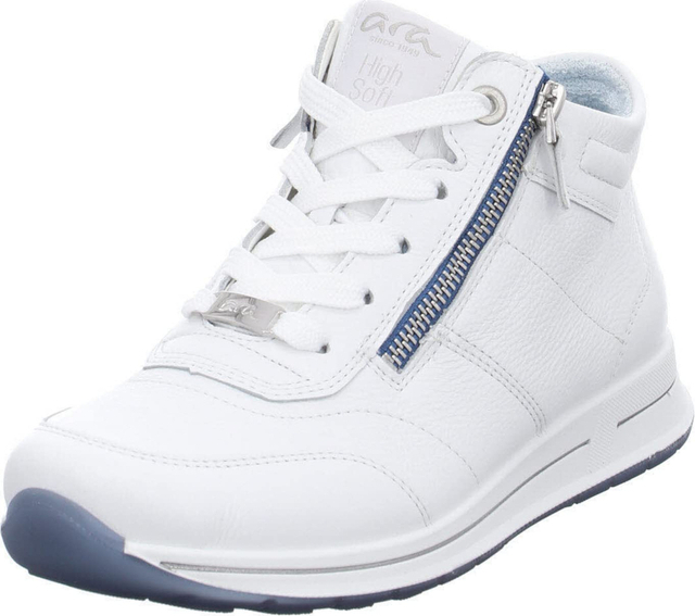 Marke: araModell-Nr.: 12-24808 06Modellname: OSAKA 2.0Art: Damenschuhe - sportliche Schnür- Halbschuhe, Mid Cut SneakerFarbe: weiß +, Sohle in weiß +, silber +, blau (weiss)Obermaterial: Echtleder - Glattleder (Gauchosoft)Innenfutter: Textil - weich gepolstert, auf BambusbasisInnensohle: Textil Komfort Fußbett, High SoftWechselfußbett: herausnehmbare InnensohleLaufsohle: TPU Sohle - leicht, flexibel und bequemVerschluss: Schnürung und Reißverschluss, 2fach RVAbsatz: flach - kein Absatz, Keil 1,5cmSchuhform: rundGrößenangabe: fällt normal ausWeitenangabe: H - Extra Weitinterne Artikelnummer für Ihre Rückfragen: 236-10-0465