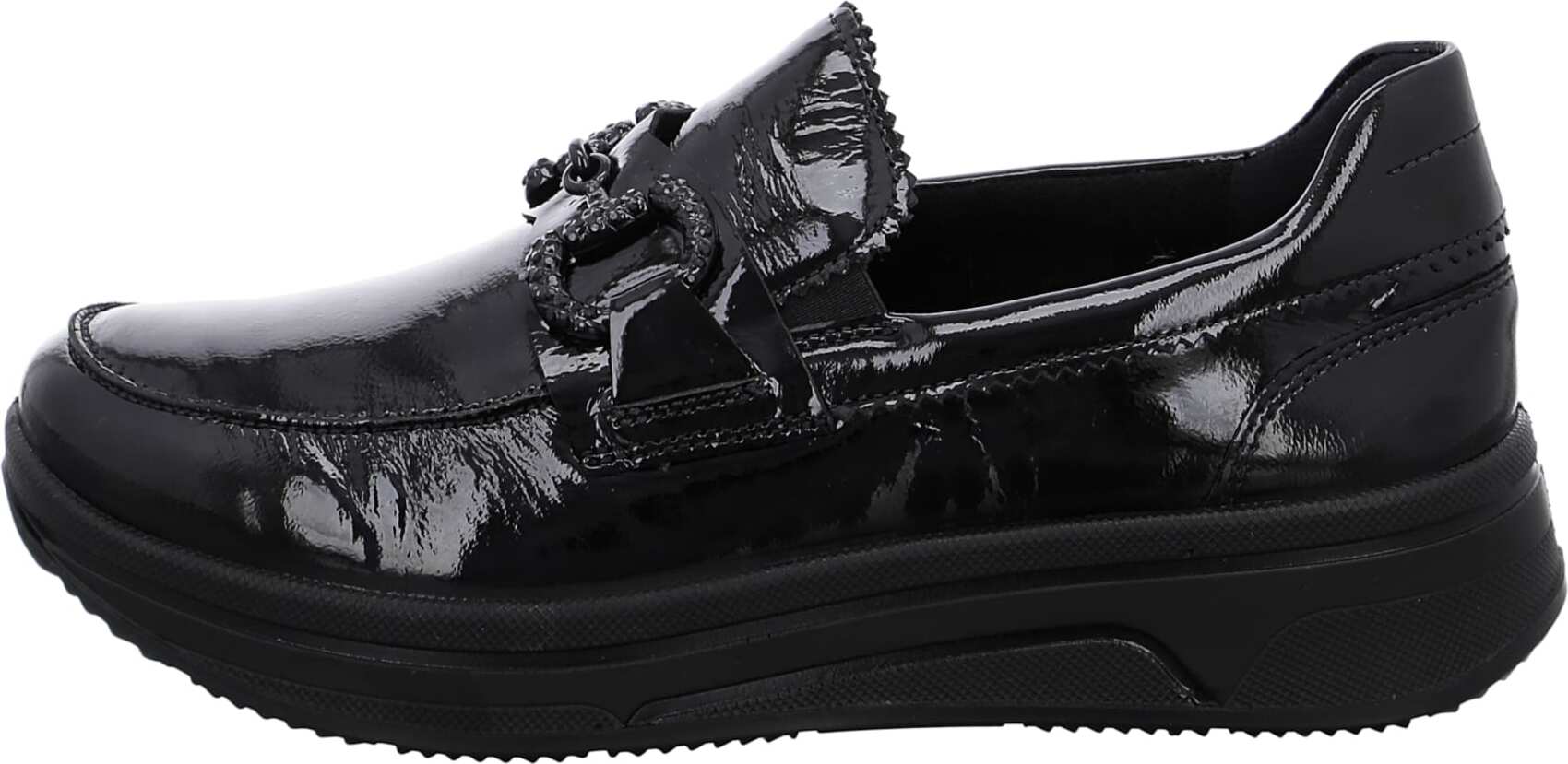 Marke: araModell-Nr.: 12-27522 01Modellname: SAPPORO 3.0Art: Damenschuhe - elegante Slipper - Halbschuhe, LoaferFarbe: schwarz glänzend (schwarz)Obermaterial: Echtleder - Lack Leder (Muranolack)Innenfutter: Textil - weich gepolstert, auf BambusbasisInnensohle: Textil Komfort Fußbett, ara - High SoftWechselfußbett: herausnehmbare InnensohleLaufsohle: PU-Laufsohle, kleines Plateau ca. +