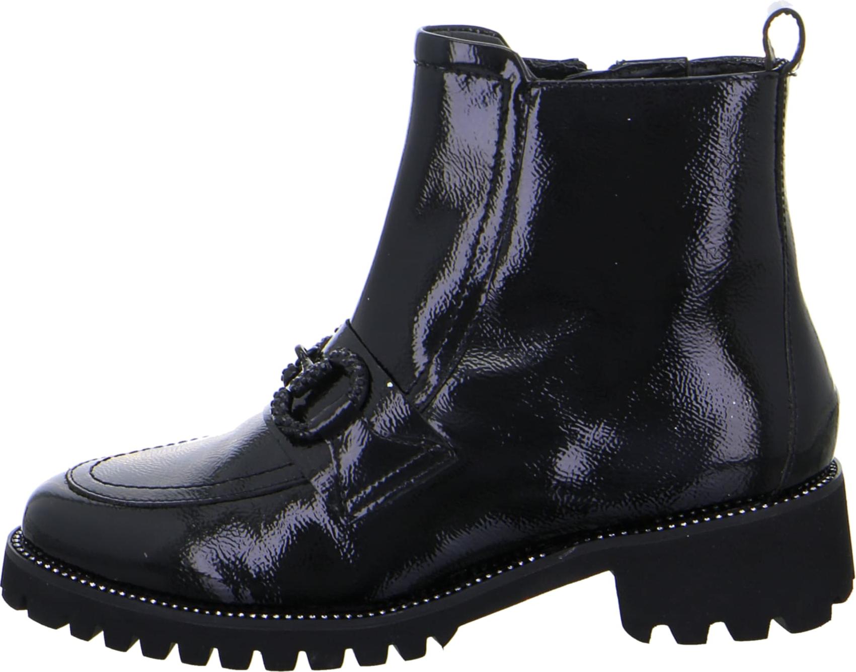 Marke: araModell-Nr.: 12-31239 11Modellname: KENT ST 2.0Art: Damen Stiefeletten - elegante Stiefelette, Ankle BootsFarbe: schwarz +, Sohlenrand mit Glitzer Strassbesatz (schwarz)Obermaterial: Echtleder - Lack Leder (Muranolack, Strass)Innenfutter: Textil - weich gepolstert, dünn gefüttertInnensohle: Textil Komfort Fußbett, ara High SoftWechselfußbett: nicht herausnehmbare InnensohleLaufsohle: EVA (Ethylenvinylacetat) - leicht und widerstandsfähigAbsatz: BlockabsatzAbsatzhöhe: kleiner Absatz, ca. +