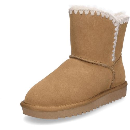 Der Schuh ist innen mit dickem Lammfell ausgestattet, und auch das fest eingearbeitete Fußbett ist mit Lammfell bezogen. Das robuste Obermaterial aus hochwertigem Veloursleder ist besonders weich und anschmiegsam und garantiert höchsten Tragekomfort.