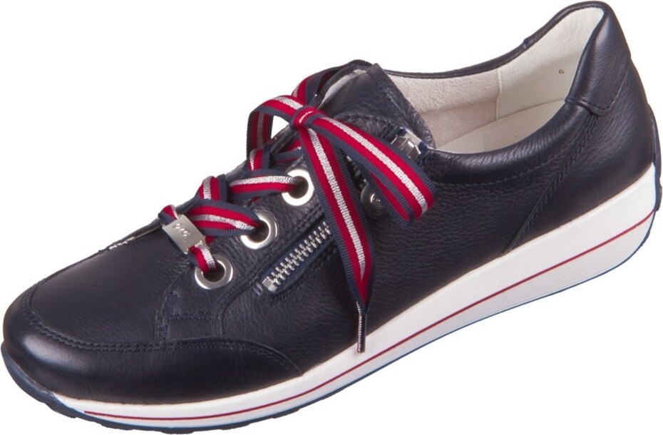 Mit dem Ara »Sneaker Glattleder« in der Farbe Blau erwartet Sie ein modischer und sportlicher Begleiter für jeden Tag. Durch das hochwertige Leder und die stilvolle Schnürung wird der Schuh zum echten Hingucker. Der seitliche Reißverschluss sorgt für ein bequemes An- und Ausziehen und macht den Schuh zu einem unverzichtbaren Begleiter im Alltag. +