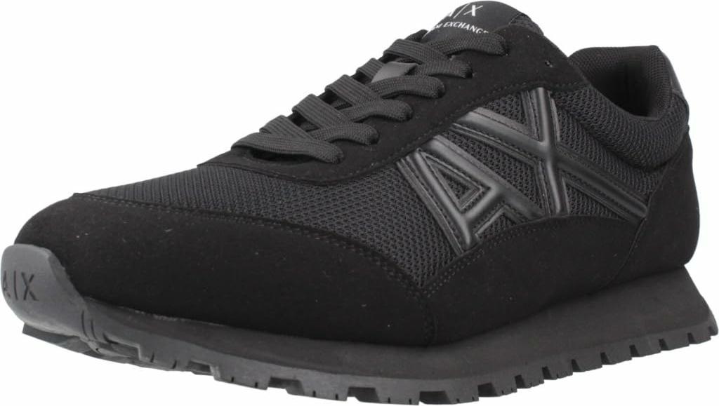 ARMANI XM001960 AF19388 Herren Sneaker Black Perforierungen an der Vorderkappe Gepolsterter Schaftrand Gepolsterte Zunge Herausnehmbare, gepolsterte Innensohle Strukturierte, breite Außensohle Rutschhemmende Laufsohle Label-Print auf der Zunge Seitliches Label-Detail Label-Prägung an der hinteren Außensohle