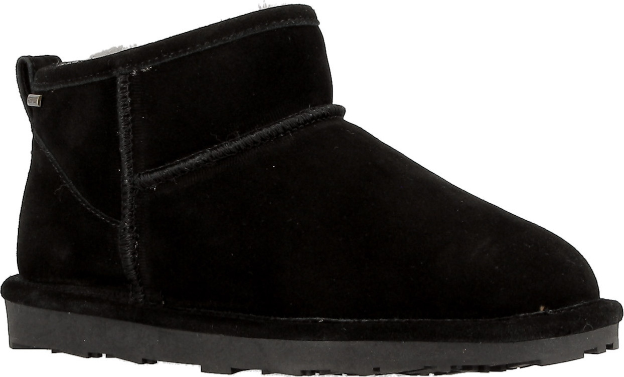 Modisches Mini-Modell mit Obermaterial aus weichem Velourleder und gefüttert mit warmem Schafsfell. +