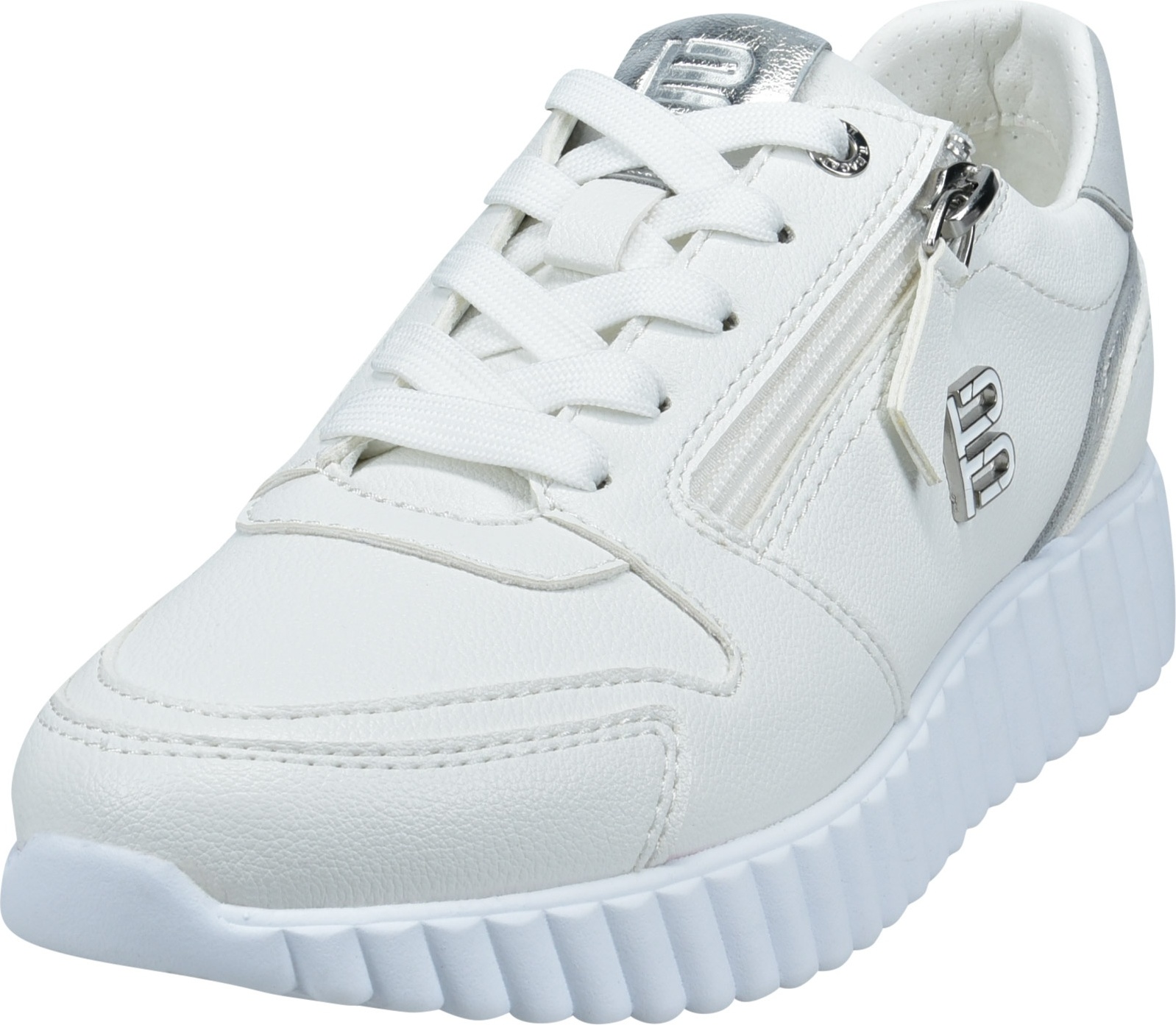 Diese weißen Sneaker wurden mit einem Reißverschluss-Accessoire modisch auf den neuesten Stand gebracht und mit silbernen Akzenten sowie Logo-Details versehen. +
