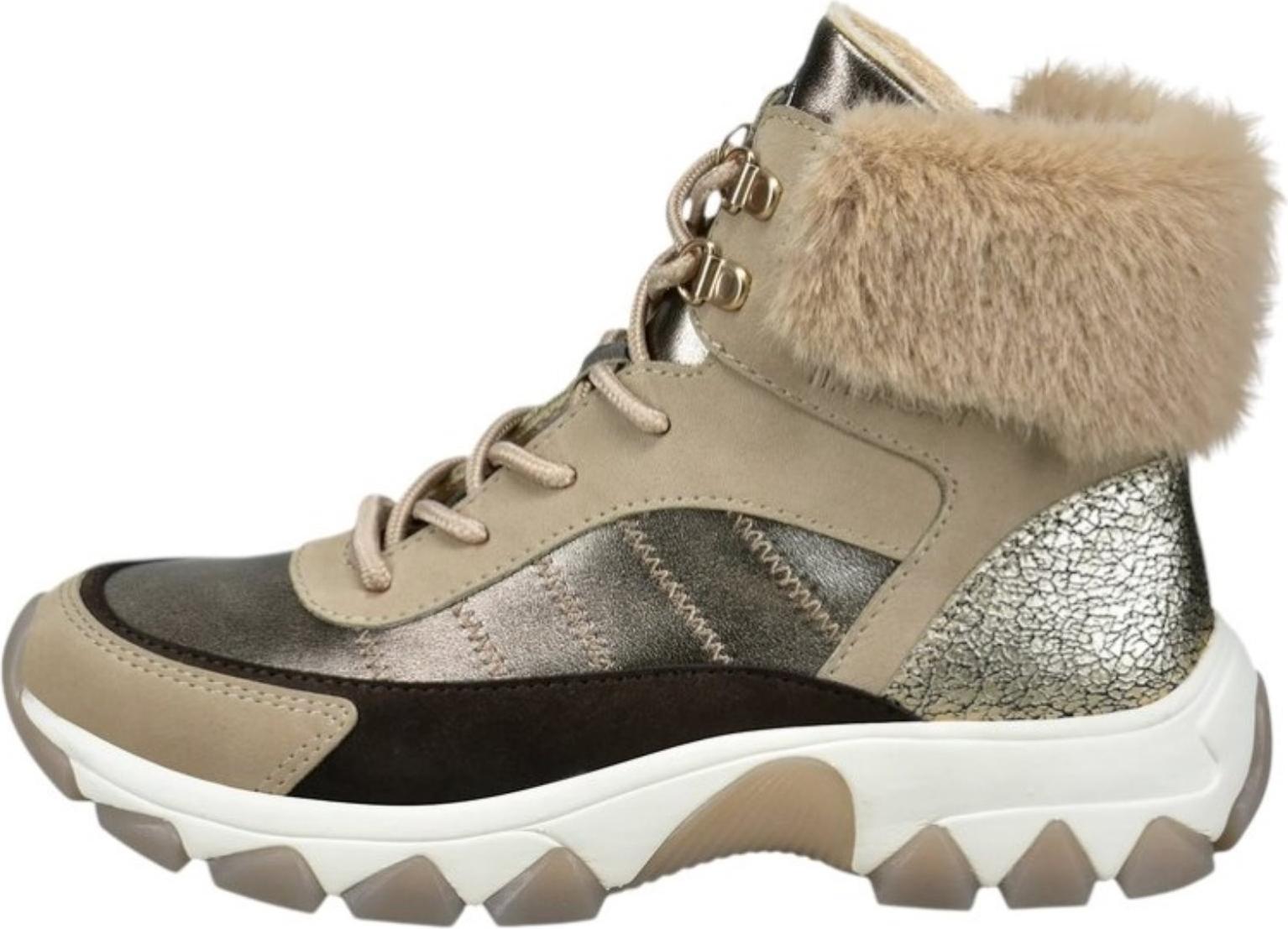 Der Materialmix mit metallischen Akzenten und kuscheligem Kunstfell sorgt für einen modischen Auftritt an kalten Tagen. Dank des herausnehmbaren Fußbetts können individuelle Einlagen problemlos eingesetzt werden – ideal für alle, die besonderen Wert auf Komfort und Fußgesundheit legen.