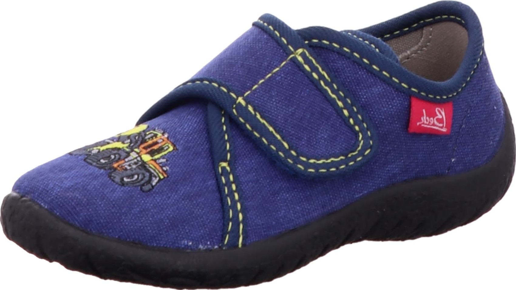 Toller Jungs-Hausschuh aus strapazierfähiger Baumwolle, bestickt mit coolem Bagger Motiv und schöner Kontrastnaht. +
