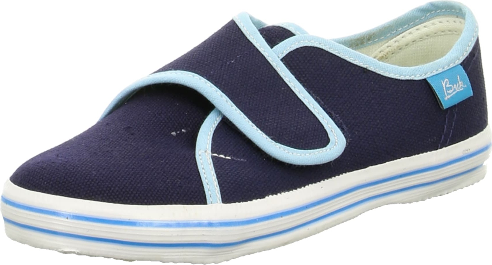 Beck Leichter Leinenschuh Basic Blau Hausschuh (für drinnen und draußen geeignet, für Mädchen und Jungs) verstellbarer Klettverschluss, atmungsaktive Baumwolle (blau)