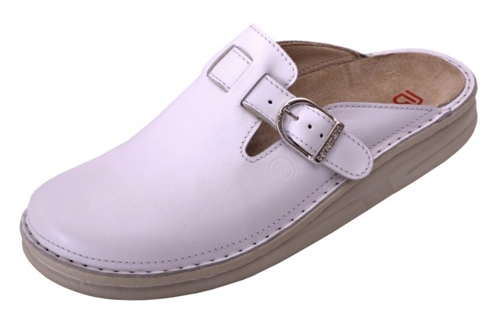 Mit einer Absatzhöhe von 25 mm ist der Clog sowohl bequem für den Alltag als auch für den Einsatz im Beruf geeignet. Der Clog hat die Schuhweite G und ist in klassischem Weiß gehalten.