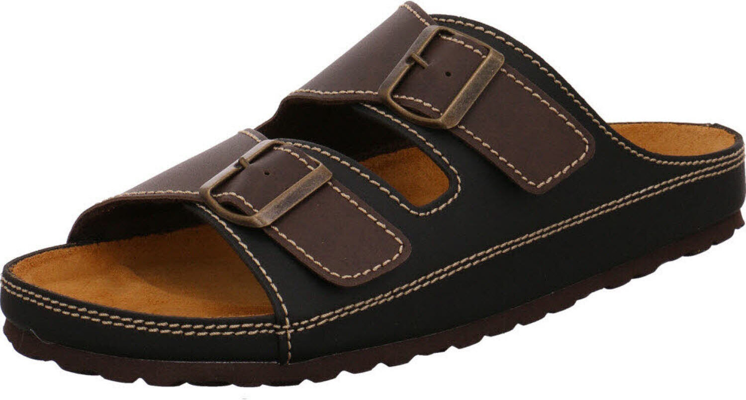 Diese praktische Herren Pantolette von BIO life ist die perfekte Wahl für Haus und Hof.Gefertigt aus pflegeleichtem Kunstleder in Braun und Schwarz macht der Schuh jeden Einsatz zuverlässig mit.Ob für Freizeit und Garten oder praktisch auch als Hausschuh.Für Komfort sorgen das anatomisch geformte Weichfußbett aus Echtleder mit Schaumeinlage, hergestellt in Spanien und der doppelte Riemen mit regulierbarer Schnalle.