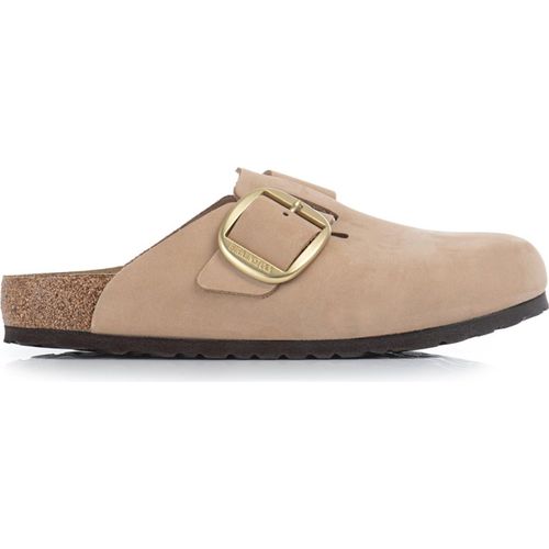 Birkenstock Boston Big Buckle Nubukleder normal Damen Clog Sandalen, Hausschuhe, Pantoletten, Badeschuhe, Gartenschuhe (beige)