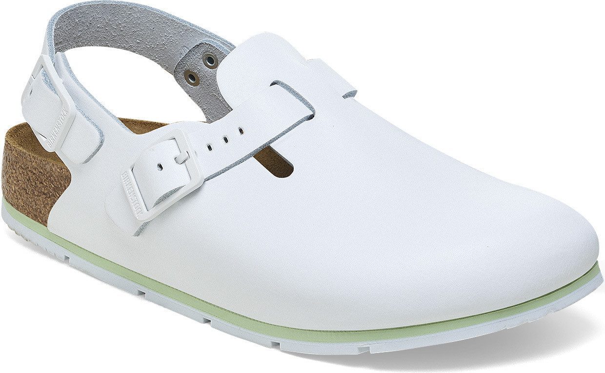 Obermaterial: Leder, PU-beschichtetLaufsohle: TPUZwischensohle: PUFußbett: KorkWeite: normalProdukteigenschaften:- Anatomisch geformtes Kork-Fußbett- Verstellbarer Fersenriemen- Rutschhemmende, zertifizierte Laufsohle (SR)- Schmutzabweisend und leicht zu reinigen- Verstellbare Professional SchnalleEinsatzbereiche:Servicepersonal, Medizin, Krankenhaus, Apotheken, Tiermedizin, Küche, Gastronomie, Catering, FreizeitMit dem Tokio SL hat BIRKENSTOCK den passenden Clog für alle Berufe entwickelt, die große Ausdauer von Träger/innen und Füßen fordern. +