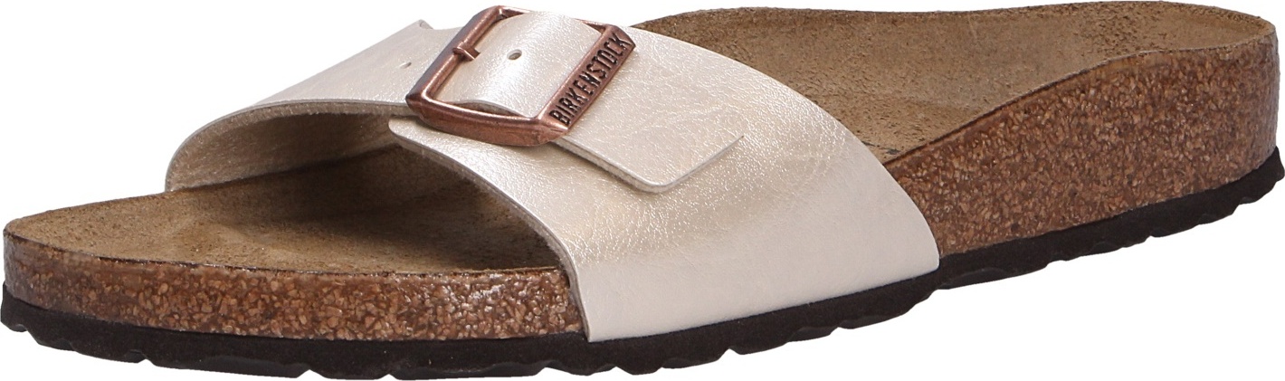 Der MADRID von Birkenstock ist mehr als nur eine einfache Pantolette. Er ist ein bekannter Vertreter seiner Art und bietet eine hochwertige Qualität in einem attraktiven beige Farbton. Das Außenmaterial besteht aus einem erstklassigen Birko-Flor, das den Look von echtem Leder hat und sich angenehm weich anfühlt. Die Innenseite ist mit einer textilen Verarbeitung ausgestattet, die ebenfalls weich und komfortabel ist. +