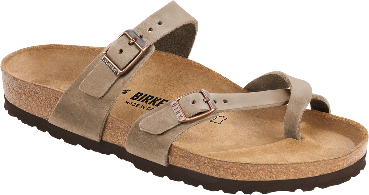 Die Mayari Sandale für Damen aus der Oiled Leather Kollektion von Birkenstock präsentiert sich in frischen und angesagten Farbkombinationen. +