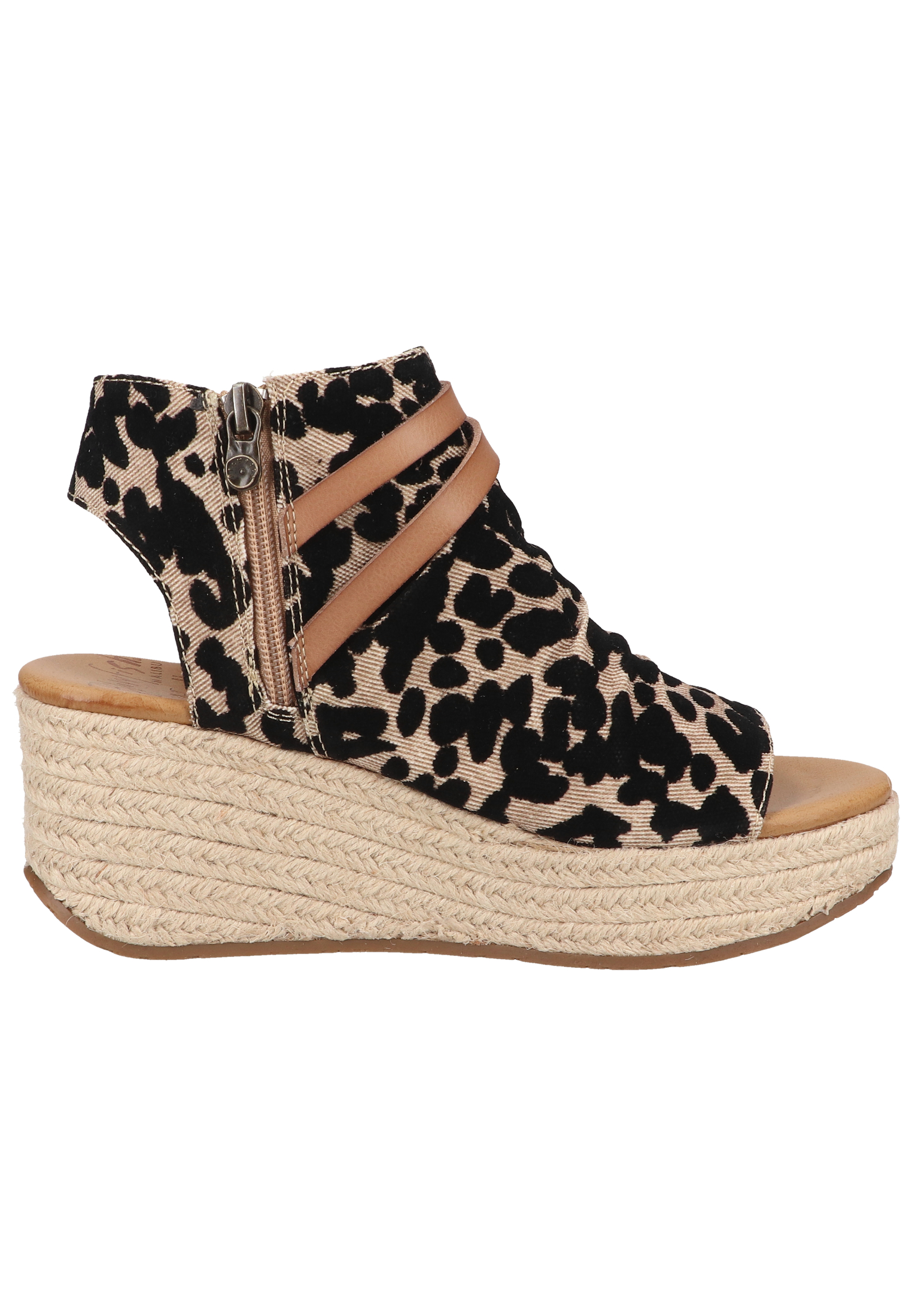 Keilabsatz in der höhe von 7cm. Das Ober- und Innenmaterial ist aus Textil.