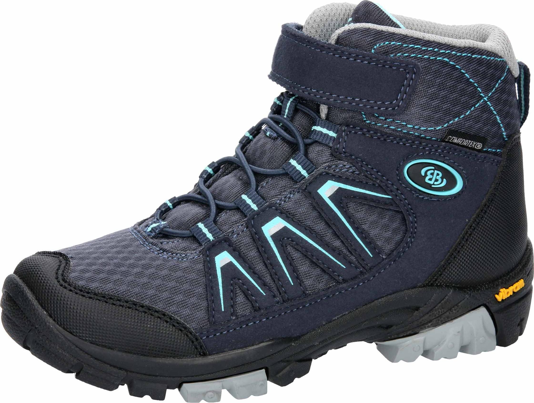 Das blaue Obermaterial aus Textil und Synthetik zeigt sportliche Zierstreifen und frische hellblaue Details. Wasserfest und atmungsaktiv konzipiert, hält der Schuh Feuchtigkeit fern, während das warme Futter an kalten Tagen zuverlässig wärmt.
