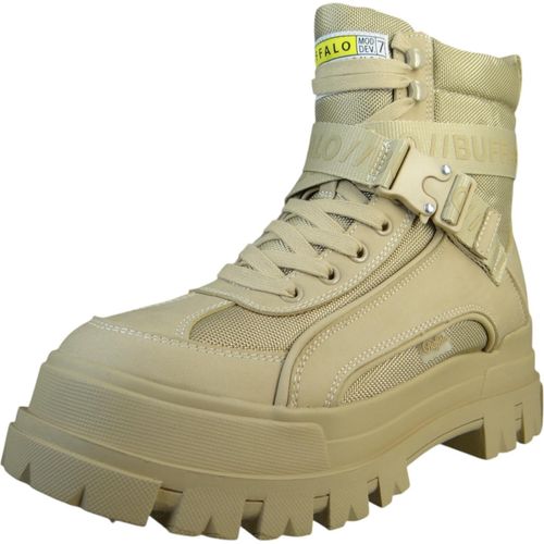 Die Buffalo ASPHA COM1 LACEUP MID Schnürboots mit Memory Foam Ausstattung in der Farbe beige sind nicht nur ein modisches Statement, sondern auch extrem bequem. Das Obermaterial aus Lederimitat und Textil in unifarbenem Design wird durch Applikationen wie Aufnäher, Logoschriftzug, Logoschriftzüge und Zierschnalle veredelt. +