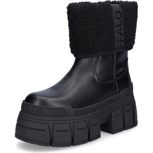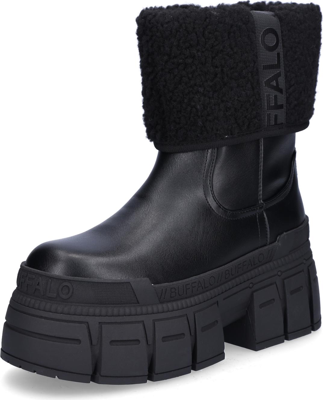 Buffalo Damen Boot Gospher Fold Warm aus Kunstleder in Schwarz mit Plateausohle, Warmfutter aus Textil und Memory Foam Fußbett aus Synthetik
