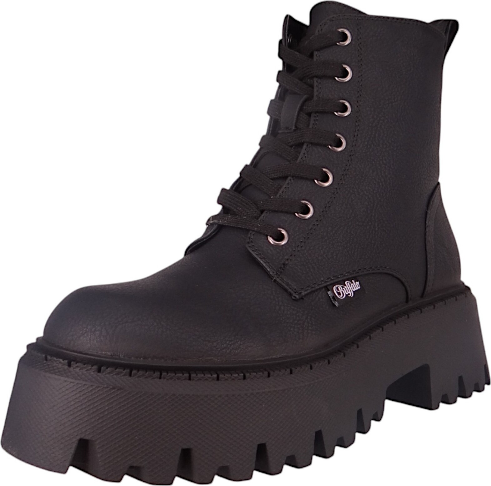 Buffalo Damen Schnürboot aus Kunstleder in Schwarz mit Schnürung, Reißverschluss, kuscheligem Textilfutter und weicher Textilinnensohle mit Memory Foam