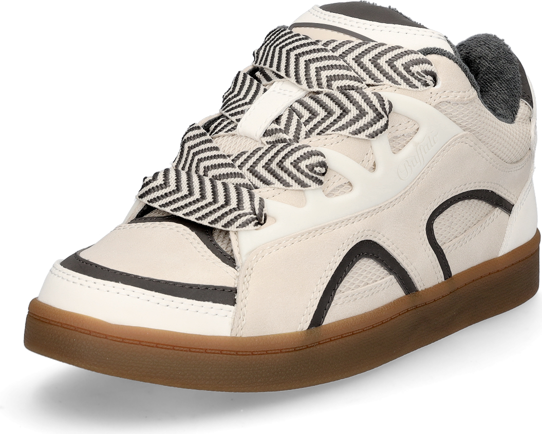 Buffalo Damen Sneaker aus veganem Lederimitat und Textil in Creme und Grau mit Wechselfußbett.