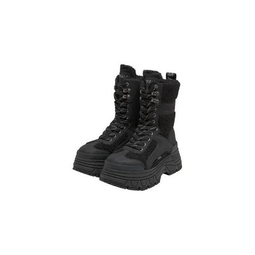 Die hohe Schaftkonstruktion mit Zuglasche und stabilem Schnürverschluss samt Metallösen und Haken sorgt für sicheren Halt und individuelle Weitenregulierung, während verstärkte Zehen- und Fersenpartien die Form stützen. Das klobige Sohlenprofil verleiht zusätzliche Trittsicherheit bei winterlichen Bedingungen und bringt zugleich einen modernen, kraftvollen Look in die Alltagsgarderobe.