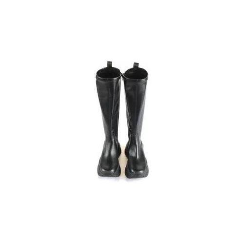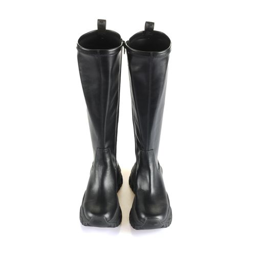 Das glatte Obermaterial aus synthetischem Stoff zeigt eine schlichte, geradlinige Konstruktion mit deutlicher Mittelnaht und praktischen Schlaufen am Schaftansatz zum einfachen Anziehen. Die profilierte, robuste Sohle aus synthetischem Material sorgt für stabilen Stand und markanten Auftritt, während die reduzierte Silhouette ohne auffällige Details vielseitig kombinierbar bleibt und ein cleanes, moderndes Finish verleiht.