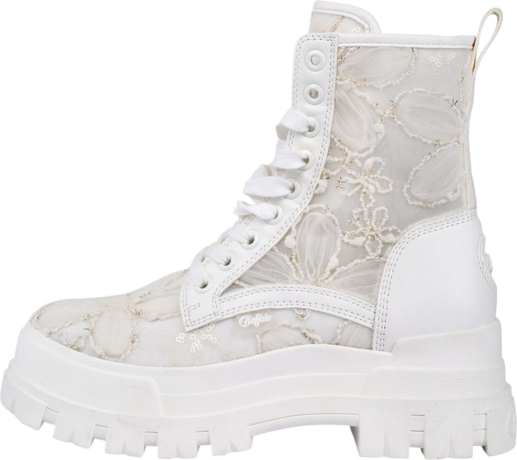 Buffalo Schnürboots Blockabsatz, Plateau, Stiefelette, mit transparentem Schaft (weiß)