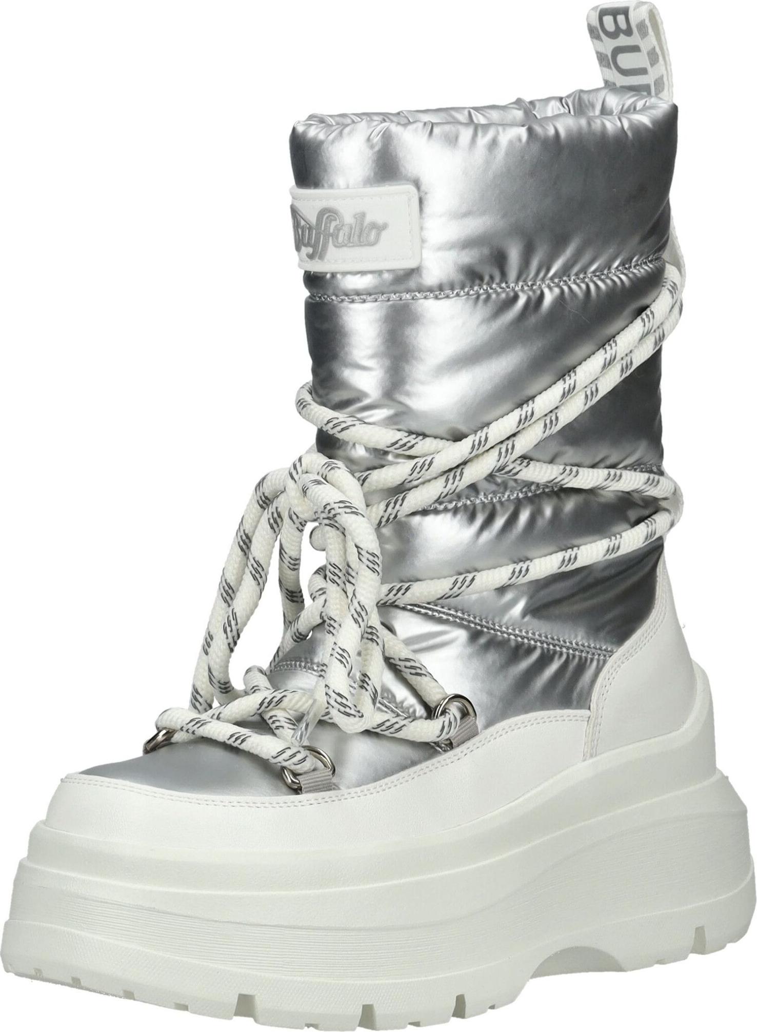 Buffalo Stiefel Lederimitat/Textil Schnürstiefel (silber/weiß)