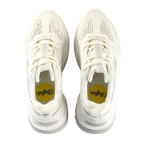 Auffällige Zierstein- oder Nietenapplikationen sowie feine Perforierungen setzen texturierte Akzente, und die gepolsterte Zunge sowie der erhöhte Schaft sorgen für angenehmen Tragekomfort. Die kräftig profilierte, leicht erhöhte Sohle verleiht Stabilität und eine moderne Silhouette, sodass sich das Modell unkompliziert zu urbanen Looks oder sportlich-lässigen Outfits kombinieren lässt.
