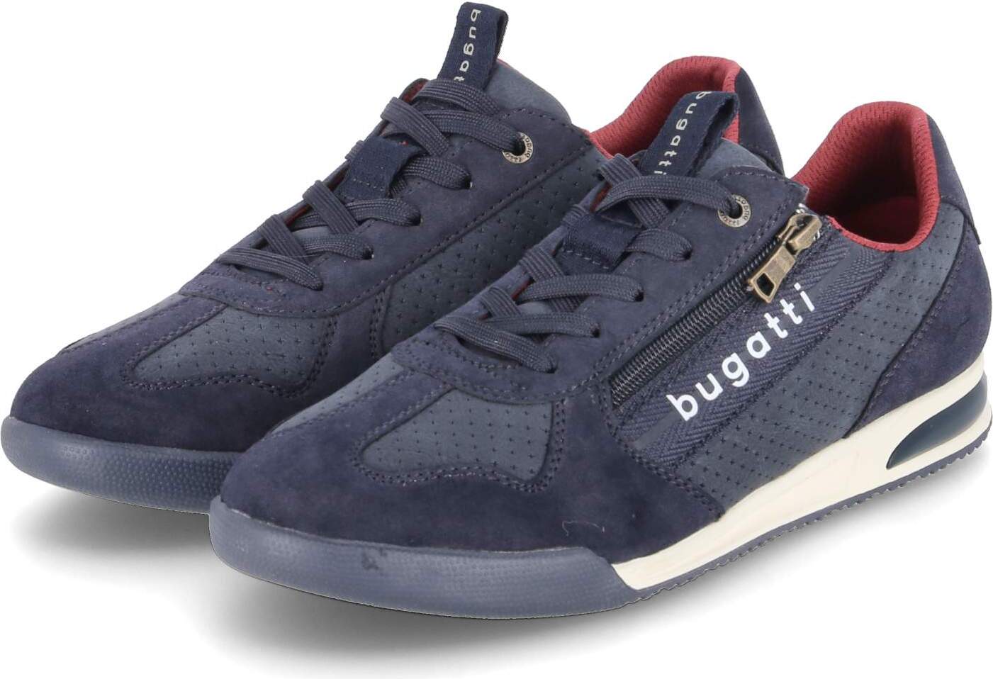 Material: Synthetik | Geschlecht: Herren | Größe: Herren: 41 | Farbe: marine | Bugatti Sneaker mit ZipperEntdecken Sie den Bugatti Sneaker, der durch seine Kombination aus Funktionalität und modernem Design besticht. Mit einem seitlichen Zipper ausgestattet, ermöglicht dieser Schuh einen schnellen und bequemen Einstieg, ideal für den aktiven Lebensstil.Design und Material Markantes Material: Eine gelungene Mischung aus glattem und gebürstetem Obermaterial sorgt für einen sportlichen Look. Sportlicher Farbmix: Farbige Akzente verleihen dem Sneaker eine dynamische Note.Komfort und Funktionalität Weich gepolsterte Ferse: Für zusätzlichen Komfort bei jedem Schritt. Wechselfußbett: Individuell anpassbar für persönliche Einlagen. Memory Foam Fußbett: Bietet höchsten Tragekomfort und verbessert die Dämpfung.Sohle Rutschhemmende Gummilaufsohle: Sorgt für sicheren Halt auf verschiedenen Untergründen. Flexible Gummisohle: Unterstützt die natürliche Bewegung des Fußes.Der Bugatti Sneaker vereint stilvolles Design mit durchdachter Funktionalität und ist somit die perfekte Wahl für modebewusste Kunden, die Wert auf Qualität und Komfort legen.