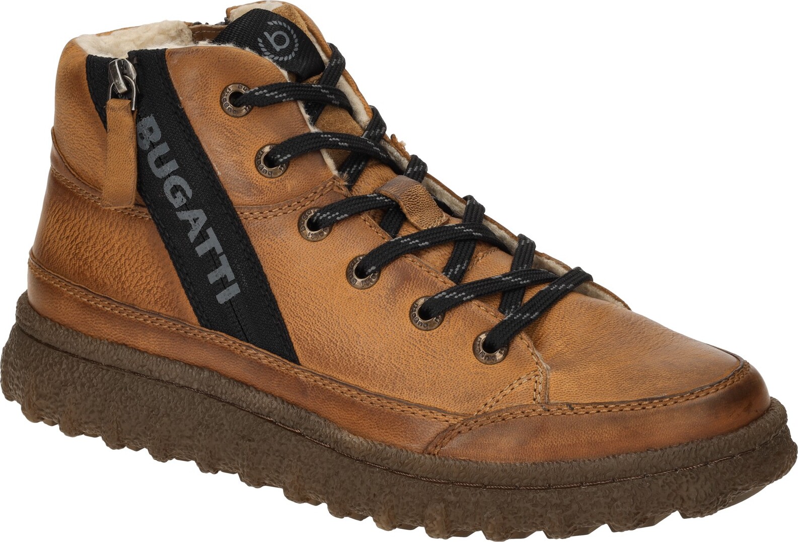 Marke: BugattiModell-Nr.: 321-APB51-3200 6300Modellname: CAMPOArt: Herren Stiefeletten - WinterstiefeletteFarbe: hellbraun +, dunkel schattiert +, schwarz (cognac)Obermaterial: Echtleder - Glattleder (USED LOOK)Innenfutter: Warmfutter (100% Polyester)Innensohle: Warmfutter - 100% PolyesterWechselfußbett: herausnehmbare InnensohleLaufsohle: robuste Profil GummisohleVerschluss: Schnürung und Reißverschluss, mit Deko-ZipperAbsatz: flach - kein AbsatzSchafthöhe: Knöchelhoch, ca. +