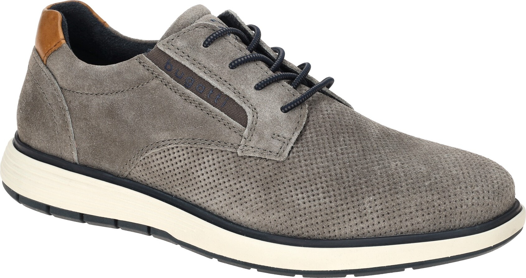 Marke: BugattiModell-Nr.: 321-AS402-1400 1400Modellname: BRUTEArt: Herrenschuhe - elegante Halbschuhe - SchnürschuheFarbe: grau +, braun +, Sohle in dunkelblau +, creme-weiß (taupe)Obermaterial: Velourleder +, Glattleder Mix (perforiert, Used-Look)Innenfutter: TextilInnensohle: Textil FußbettWechselfußbett: herausnehmbare InnensohleLaufsohle: GummisohleVerschluss: 4fach Schnürung, Elastic LaceAbsatz: flach - kein AbsatzSchuhform: rundGrößenangabe: fällt normal ausWeitenangabe: G - normal Weiteinterne Artikelnummer für Ihre Rückfragen: 133-20-0030