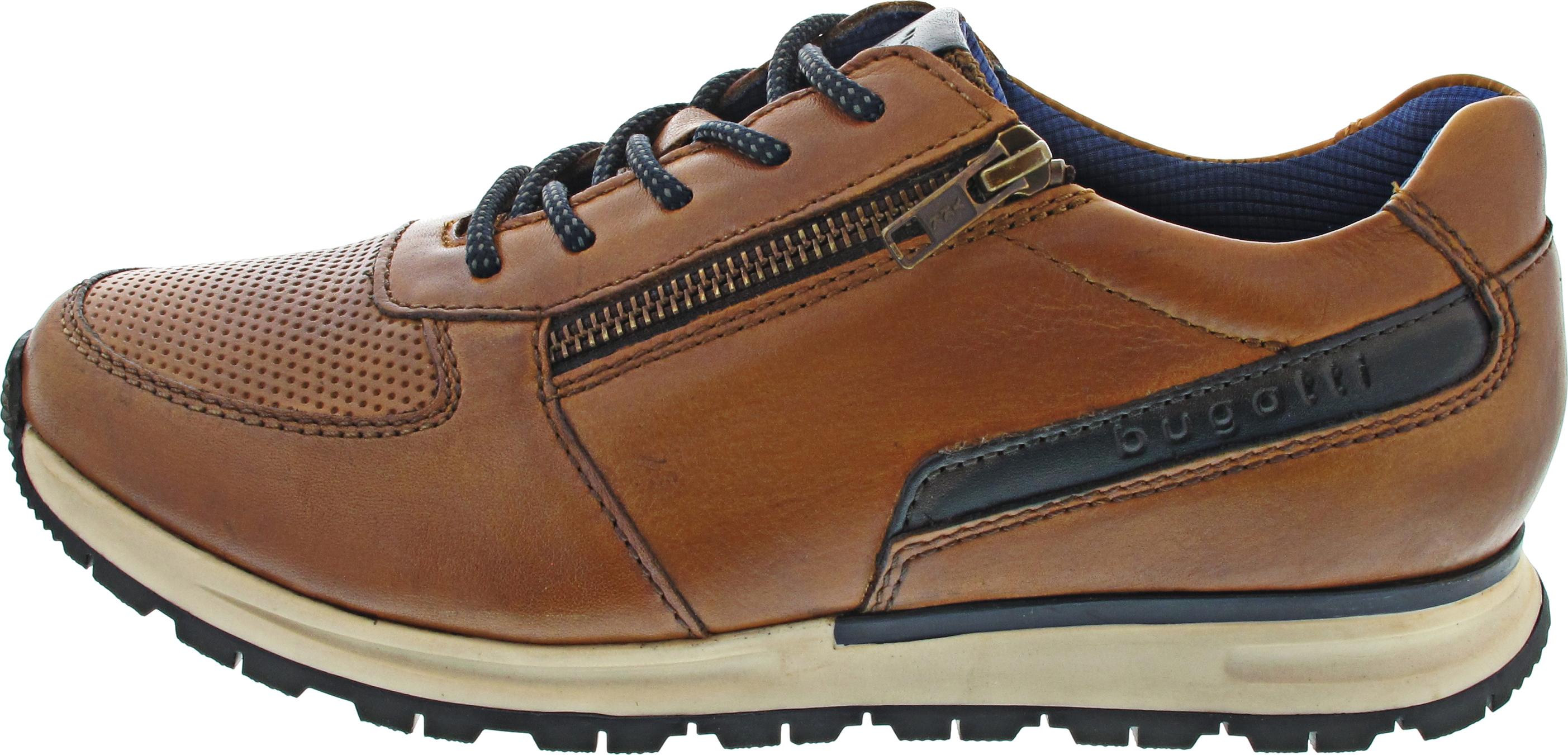 Bugatti Stranger - gepolsterte Decksohle, herausnehmbar - flexible Laufsohle - rutschhemmend - gepolsterter Schaftabschluss und Zunge - sportiver Look - Wechselfußbett - praktischer Außenreißverschluss - trendiger Leder-Sneaker für Herren - Used-Look