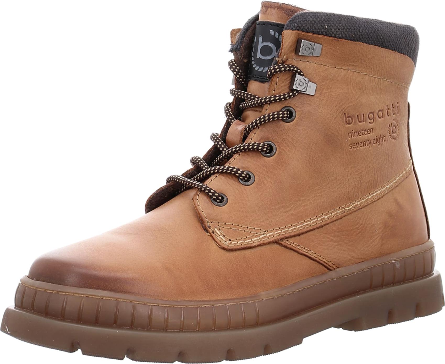 Schick und warm ist die gefütterte braune Schnürstiefelette von Bugatti für Herren. +
