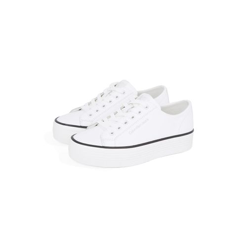 Calvin Klein Jeans BOLD VULC FLATF LOW LTH IN Sneaker, Halbschuh, Schnürschuh, Freizeitschuh mit CK-Logo an der Ferse (schwarz/weiß)