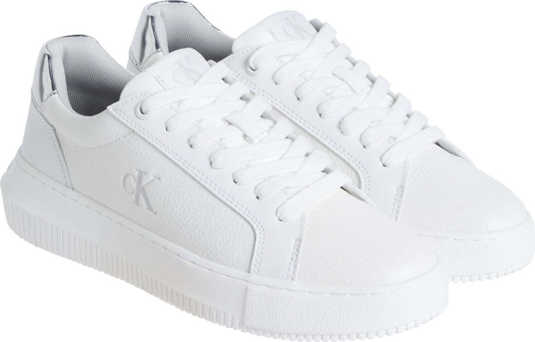 Calvin Klein Jeans CHUNKY CUPSOLE LOW MG Sneaker, Schnürschuh, Freizeitschuh, Halbschuh mit Fersenkontrast (silber/weiß)